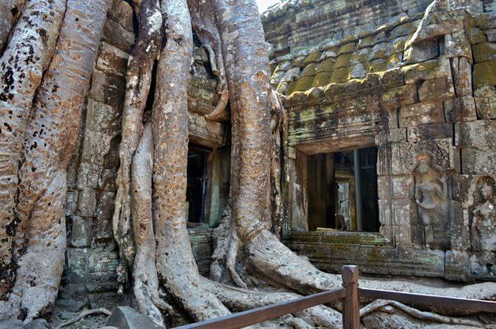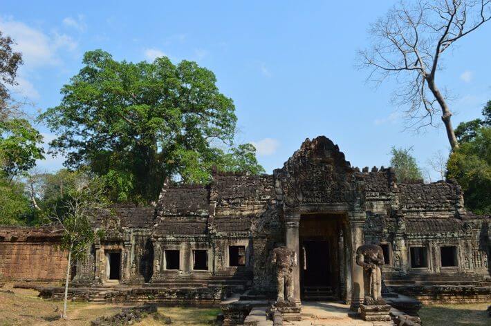 Templo Preah Khan - Diz ter sido originalmente uma cidade com mais de dez mil habitantes. No começo era budista, mas suas imagens e artefatos religiosos foram destruídos e então o templo passou a ser hindu.