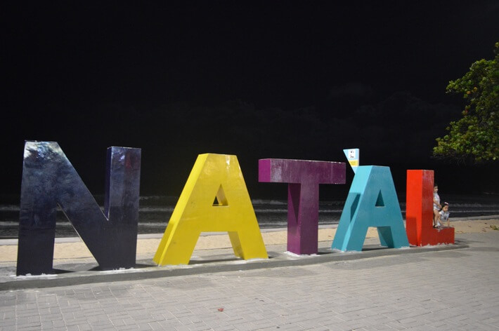 Letreiro com nome da cidade na Praia de Ponta Negra